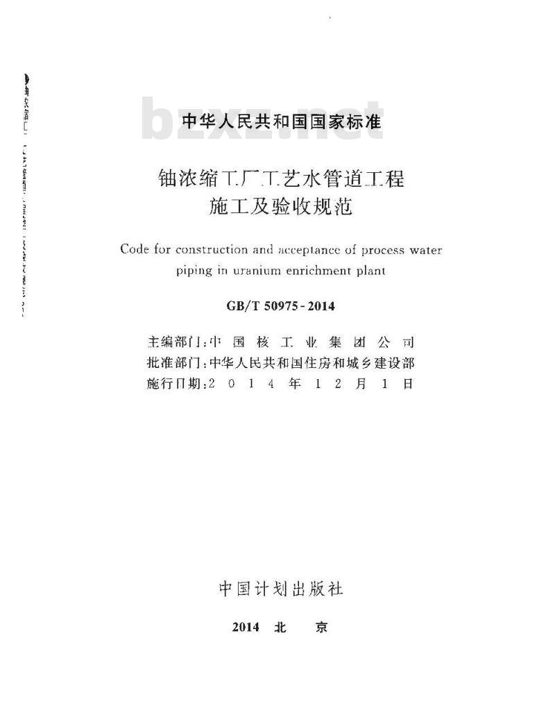 - GB/T 50975-2014 铀浓缩工厂工艺水管道工程施工及验收规范