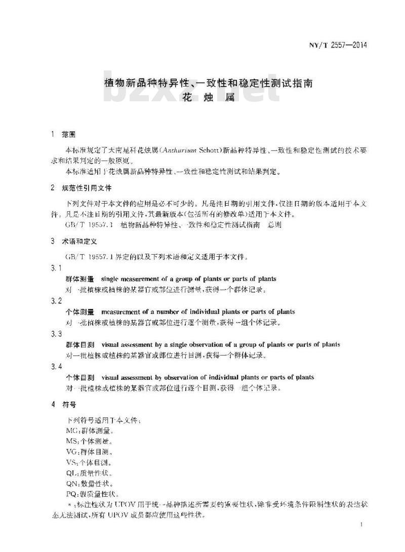 - NY/T 2557-2014 植物新品种特异性、一致性和稳定性测试指南 花烛属
