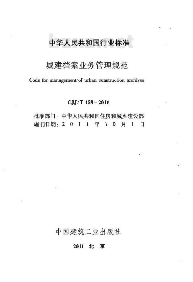 《城建档案业务管理规范》的公告现批准城建档案业务管理规范》为行业标准,编号为CJJ/T1582011,自2011年10月1日起实施,本规范我部标准定额研究所组织中国建筑工业出版社出版发行。