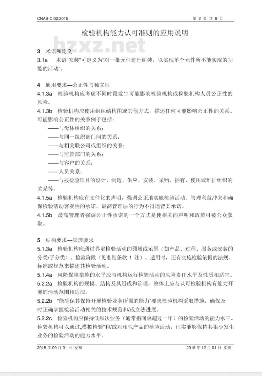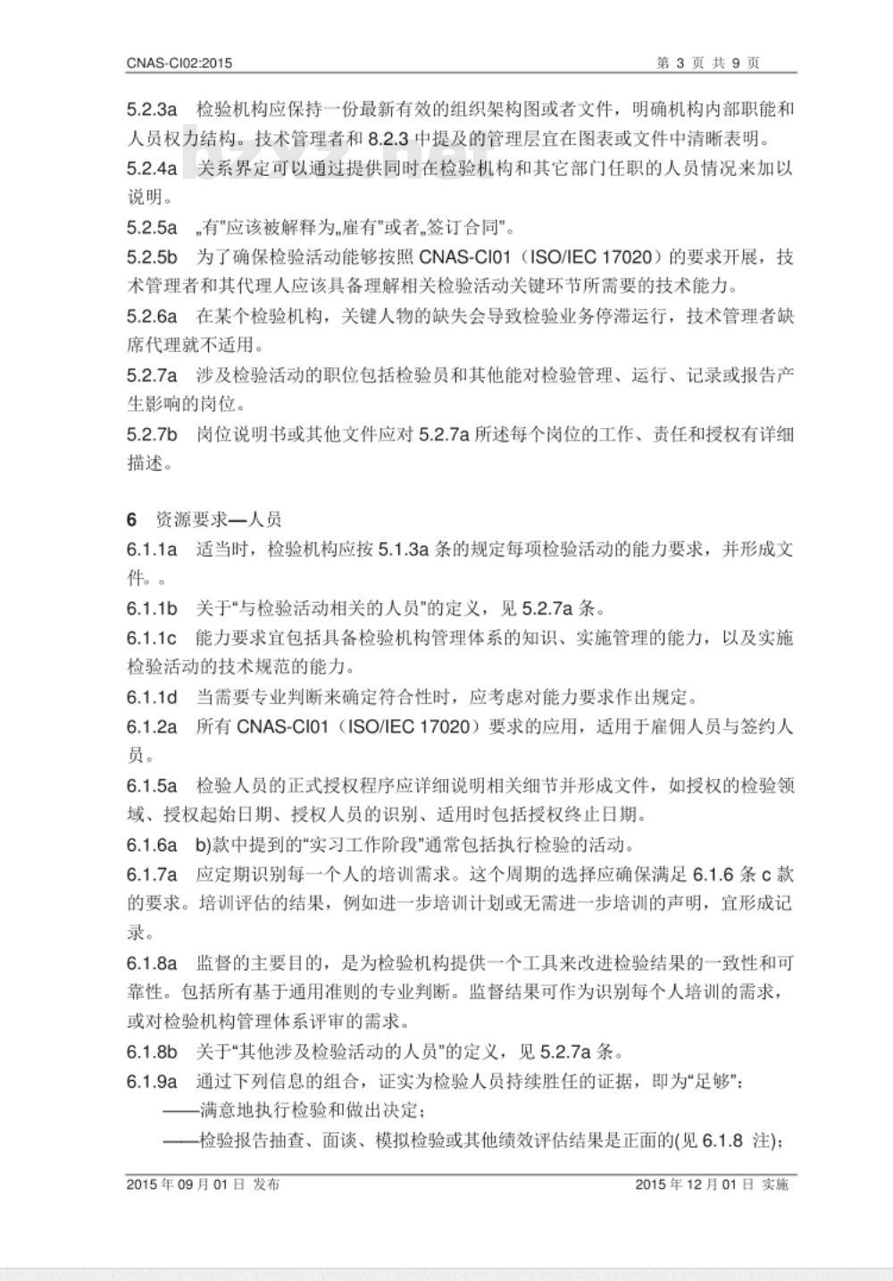 使用CNAS-CI01(ISO/IEC17020)和本应用文件时,CNAS既不宜增加也不宜减少CNAS-CI01(ISO/IEC17020)的要求。2015年09月01日发布