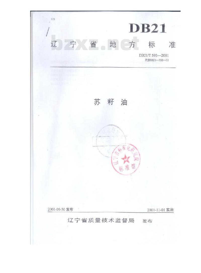- DB21/T 593-2001 苏籽油
