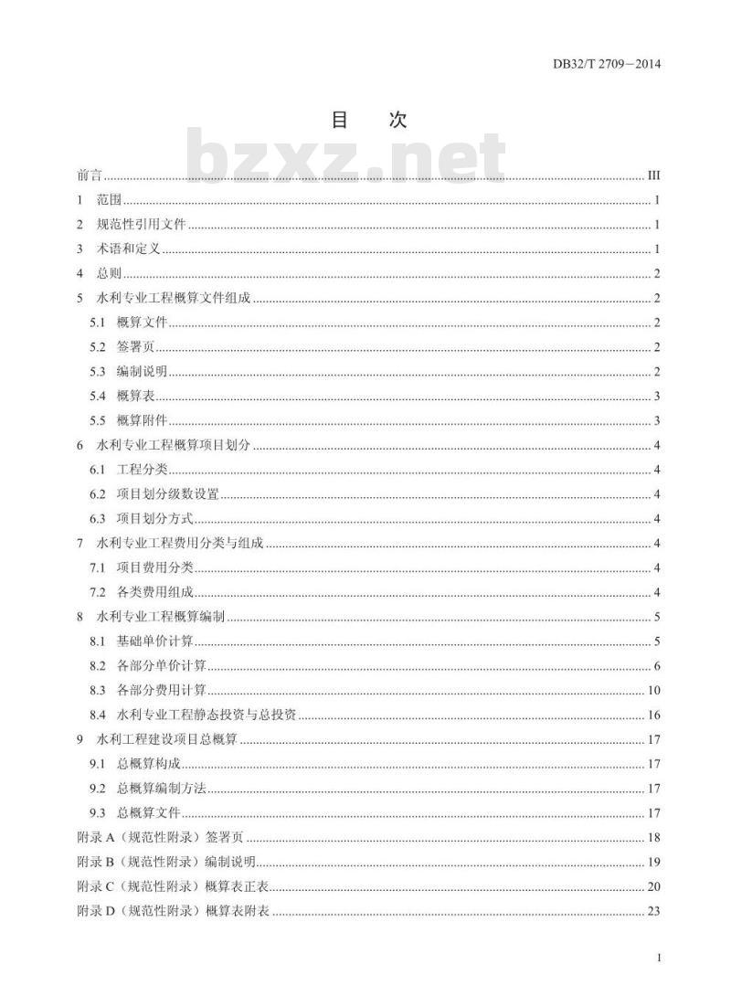 本标准规定了总则,水利专业工程概算文件组成、概算项目划分、费用分类与组成、概算编制,水利工程建设项目总概算。