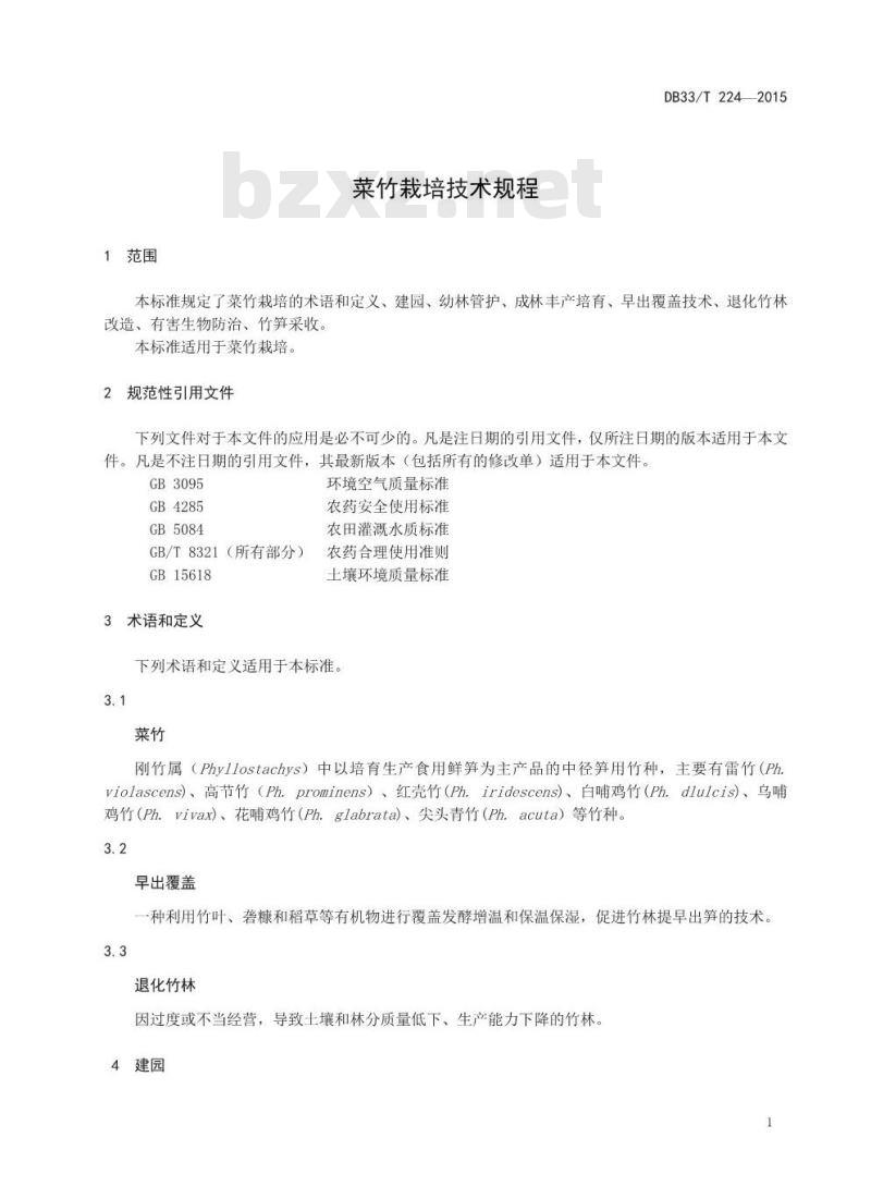 本标准依据GB/T1.1-2009给出的规则编写。本标准代替DB33/T224-2009《无公害菜竹丰产栽培技术规程》DB33/T224-2015