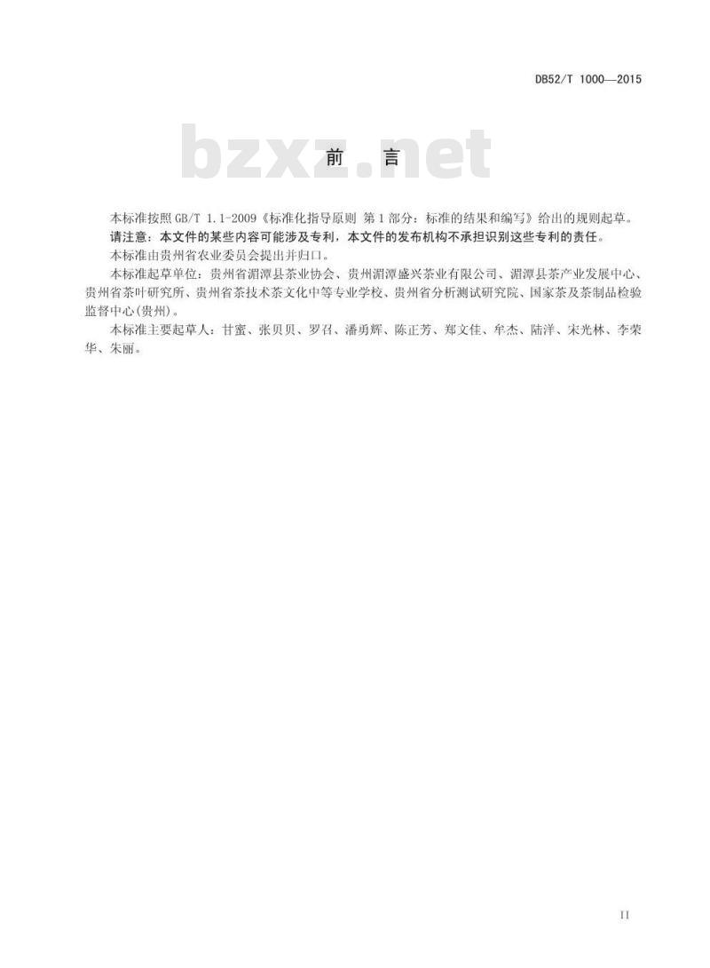 本标准按照GB/T1.1-2009《标准化指导原则第1部分:标准的结果和编写》给出的规则起草请注意:本文件的某些内容可能涉及专利,本文件的发布机构不承担识别这些专利的责任。本标准由贵州省农业委员会提出并归口。本标准起草单位:贵州省湄潭县茶业协会、贵州湄潭盛兴茶业有限公司、湄潭县茶产业发展中心、贵州省茶叶研究所、贵州省茶技术茶文化中等专业学校、贵州省分析测试研究院、国家茶及茶制品检验监督中心(贵州)。
