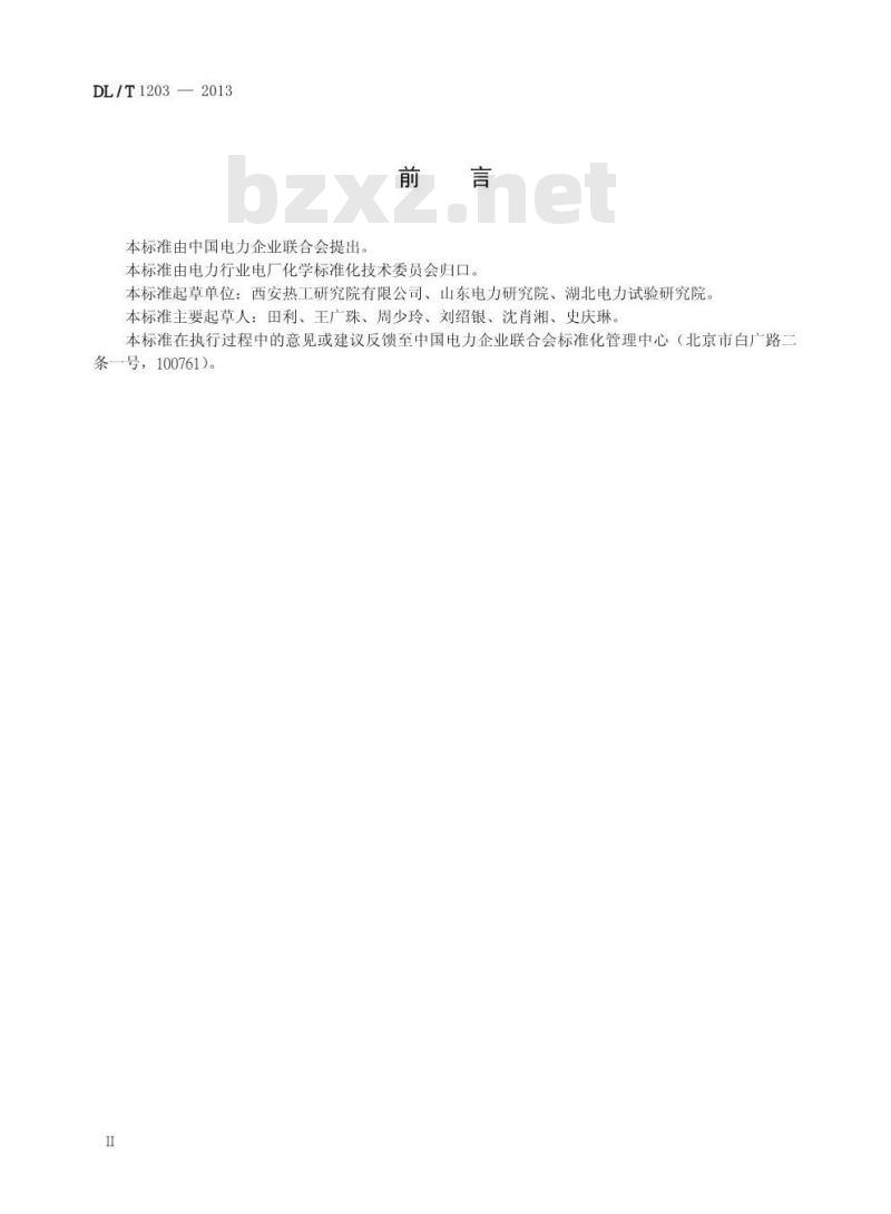 本标准由电力行业电厂化学标准化技术委员会归口。本标准起草单位:西安热工研究院有限公司、山东电力研究院、湖北电力试验研究院本标准主要起草人:田利、王广珠、周少玲、刘绍银、沈肖湘、史庆琳。本标准在执行过程中的意见或建议反馈至中国电力企业联合会标准化管理中心(北京市白广路二条号,100761)。