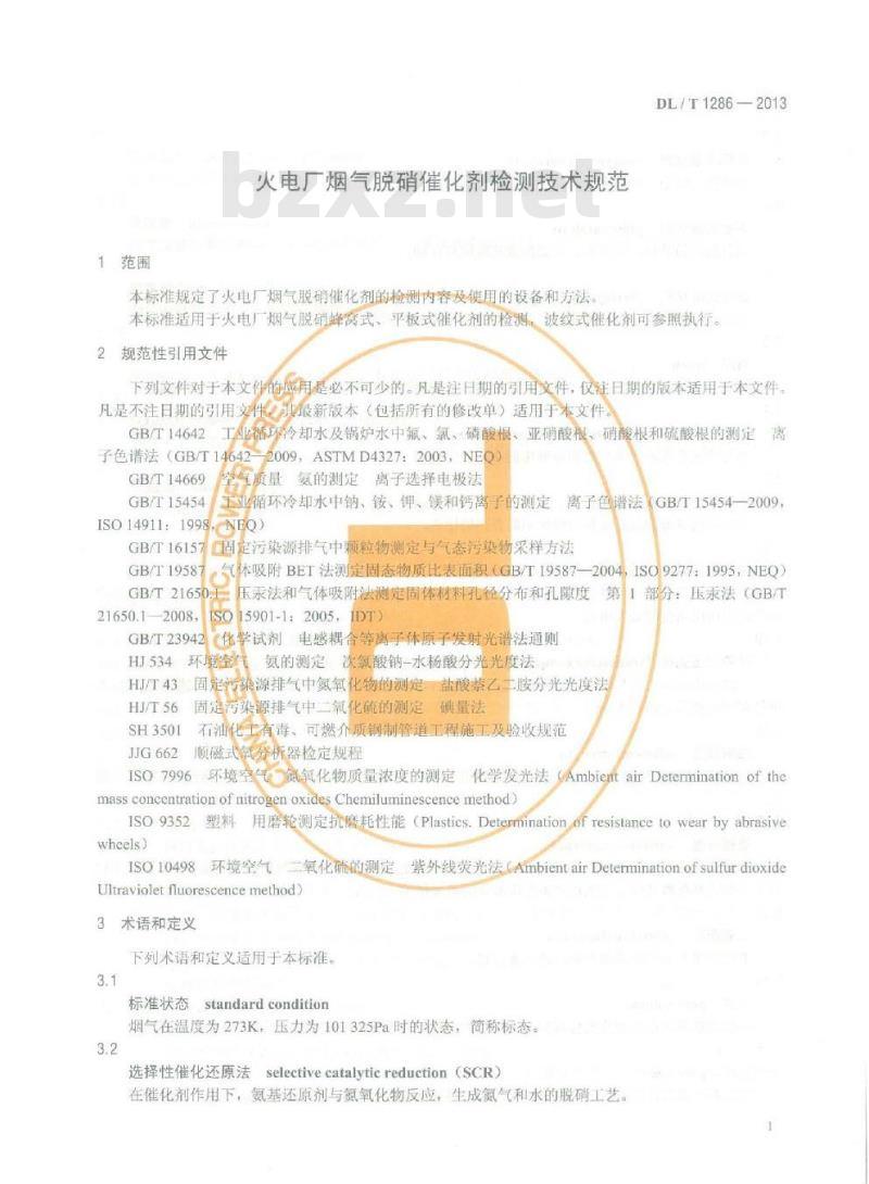 - DL/T 1286-2013 火电厂烟气脱硝催化剂检测技术规范
