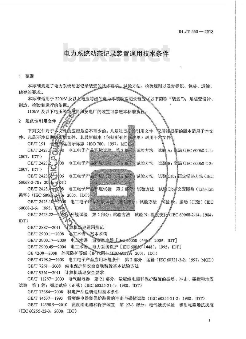 - DL/T 553-2013 电力系统动态记录装置通用技术条件