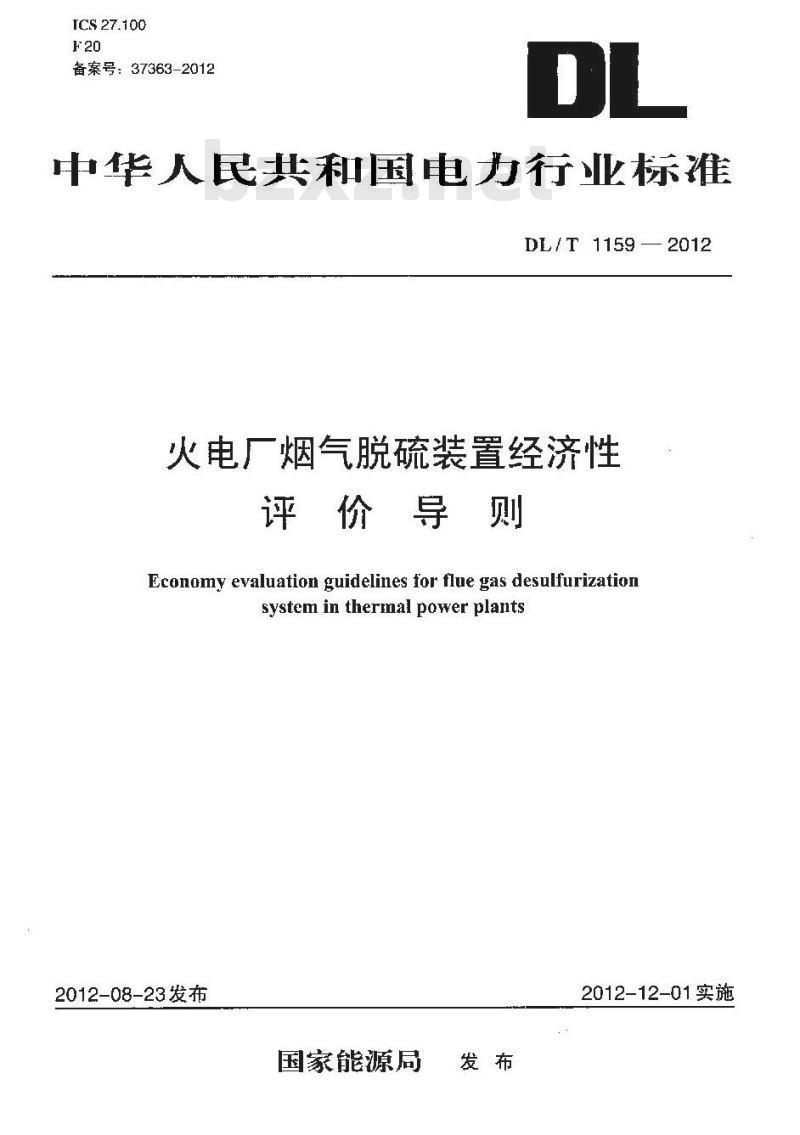 - DL/T 1159-2012 火电厂烟气脱硫装置经济性评价导则