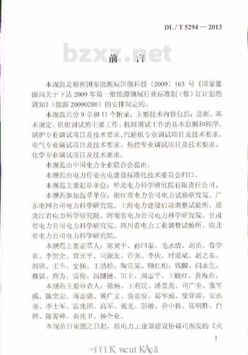 本规范是根据国家能源局国能科技【2009】163号《国家能源局关于下达2009年第一批能源领域行业标准制(修)订计划的通知》(能源20090280)的排制定的。本规范共分9章和11个附录,主要技术内容包括:总则、基本规定、机组调试的主要工作、机组调试工作的基本原则和程序、锅炉专业调试项目及技术要求、汽轮机专业调试项目及技术要求、电气专业调试项目及技术费求、热控专业调试项目及技术要求、化学专业调试项目及技术要求。本期范由中国电力企业联合会提出本规范由电力行业火中建设标准化技术委员会归口本规范主要起草单位:华北电力科学研究院有限责任公司。本规范参加起草单位:渐江省电力公司电力试验研究院、厂东电网公司电力科学研究院、海电力建设启动调整试验所、黑龙江省中力科学研究院、河南省电力公司电力科学研究院、甘乐省电力公司电力科学研究院、四川省电力工业调整试验所、湖北省电力公同电力科学研究院。