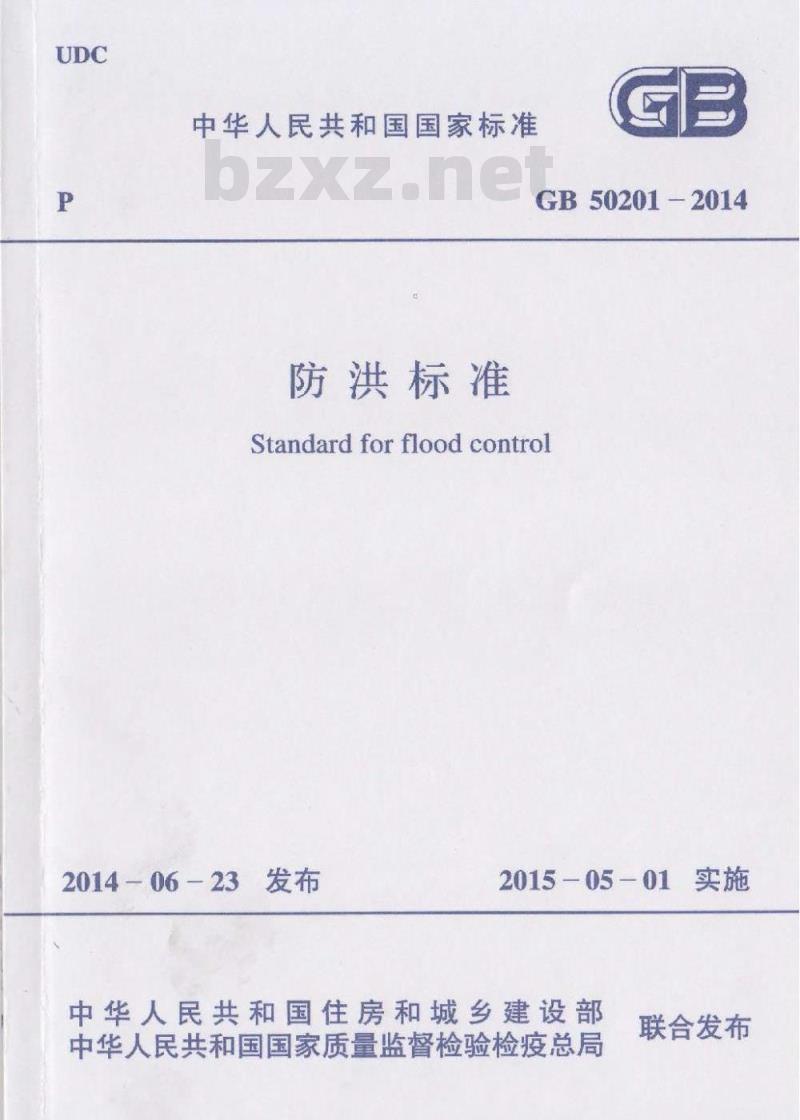 现批准防洪标准》为国家标准,编号为GB502012014,自2015年5月1日起实施、其电、第5.0.4、6.1.2、6.2.2、6.3.56.5.4、7.2.4、11.3.1、11.3.3、11.8.3条为强制性条文必须严格执行。原国家标准《防洪标准》GB5020194同时废止:本标准由我部标准定额研究所组织中国计划出版社出版发行。