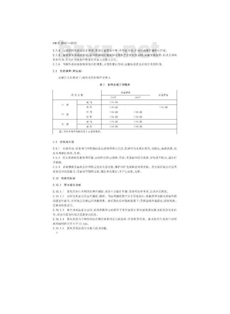 5.11.1新风系统应果用高效半、低染音、性能稳定可靠的风机。5.11.2新风系统的风机正誉连续运转时间成大一20)000h,5.11.3新风系统的风机安全要求符合GB10080—2C01的规定,安装的各紧固件应有防松联指施中,大型风机周定点应有战囊装受。风机应具有可的技地,电机外壳率接地点电阻不大于0.1口。5.12过滤器要求