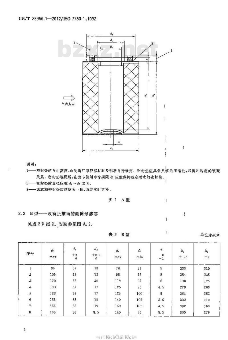 GB/T 28956.1—2012/IS0 7750-1:1992GB/T28956&道路车辆商用车用空气滤清器滤芯尺寸分为两个部分:第1部分:A型和B型;
