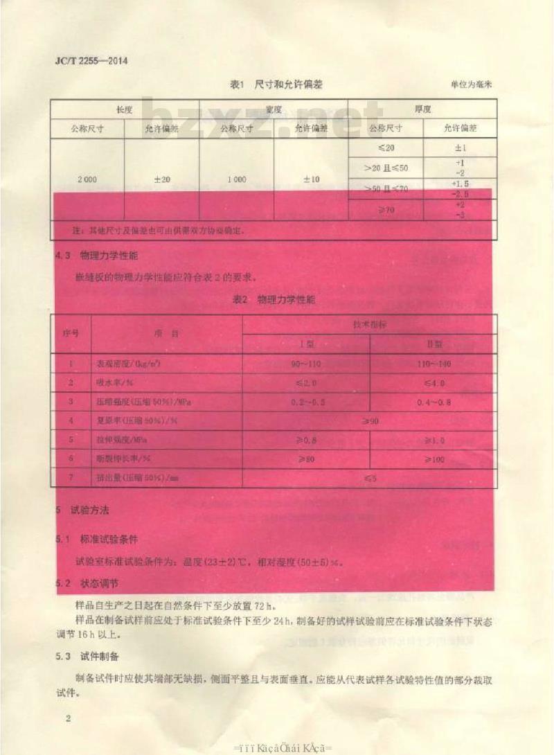 嵌缝板的尺寸和允许偏差应符合表1的规定JC/T2255-2014
