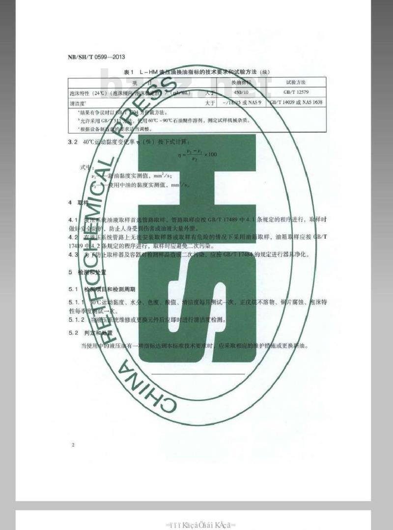 本标准按照GB/T1.1-2009给出的规则起草。本标准是对SH/T0599—1994(2003)《L-HM液压油换油指标》的修订。本标准与SH/T0599—1994相比的主要变化如下:NB/SH/T0599--2013