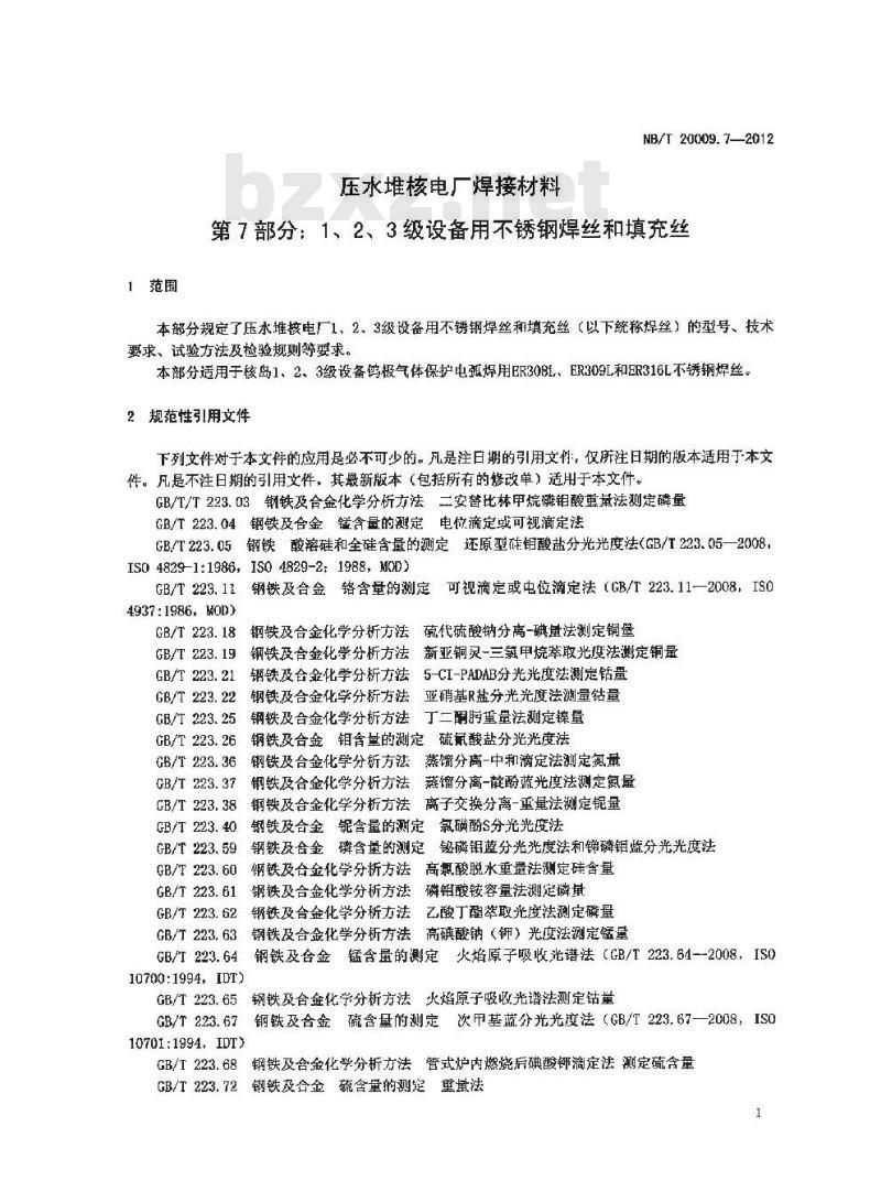 - NB/T 20009.7-2012 压水堆核电厂用焊接材料 第7部分:1、2、3级设备用不锈钢焊丝和填充丝