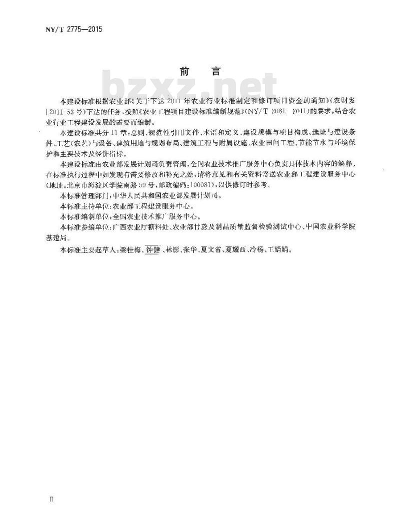 本建设标准由农业部发展计划司负责管理,全国农业技术推广服务中心负责具体技术内容的解释,在标准执行过程中如发现有需要修收和补充之处,请将意见和有关资料育送农业部1程建设服务中心(地址:北京市游淀区学院南路59号,邮政编码:100081),以供修订时参考本标准管理部门:中华人民共和国农业部发展证划司。本标推主持单位:农业部下程建设服务中心。本标摊编制单位全国农业技术摊广服务中心。本标推参编单位:广西农业厅糖料处、农业部廿蔗及制品质量监督检验测试中心、中国农业科学院基建局。