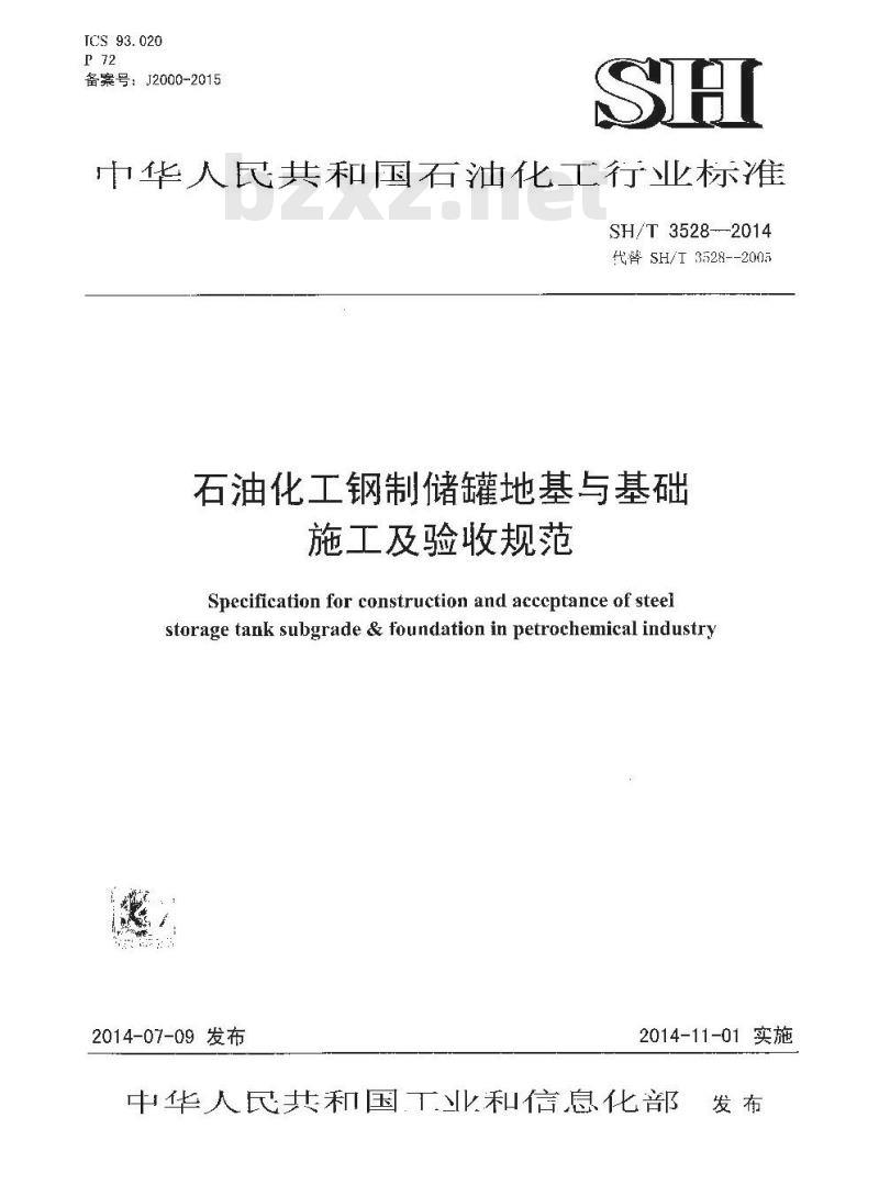 - SH/T 3528-2014 石油化工钢制储罐地基与基础施工及验收规范