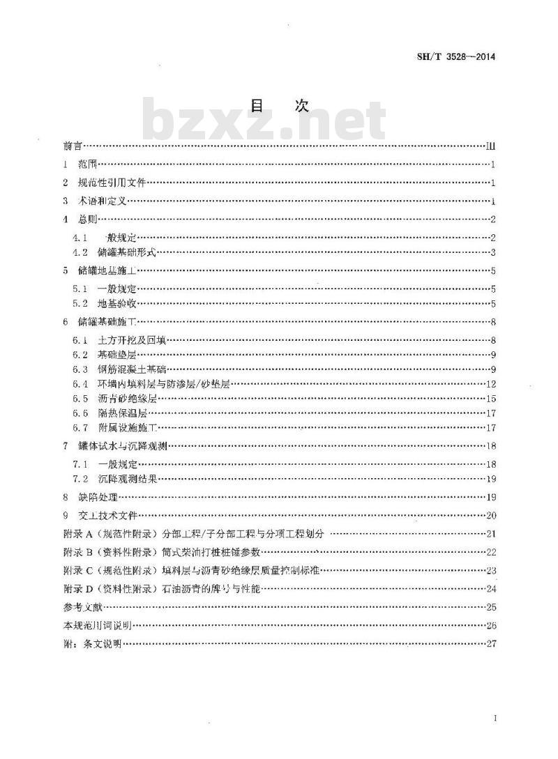 本规范的主要技术内容是:地基处理技术;例筋混凝土基础施工质量验收项、标滩利程序:施工现场质量管理稚质量控制要求;质量缺陷处理技术。本规范是准SH/T35282005《右化工钢储罐地基与基础施T及验收规范》的基础上修订而成,修订的上要技术内容是: