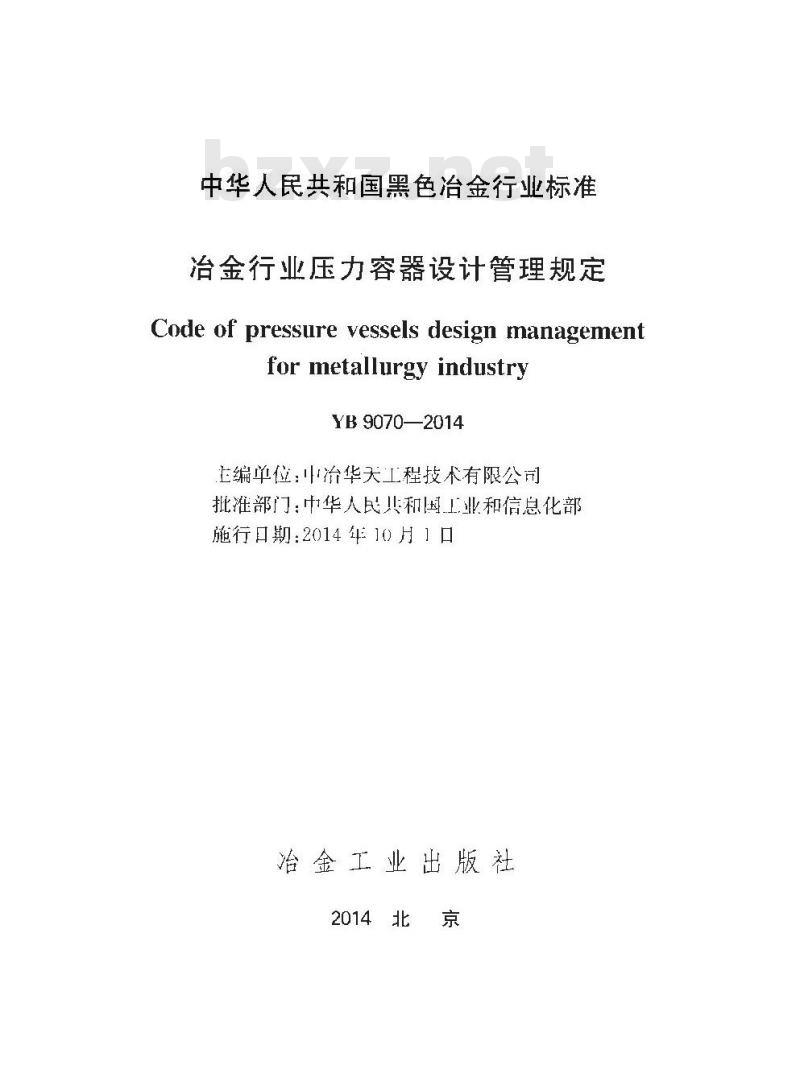 - YB 9070-2014 冶金行业压力容器设计管理规定