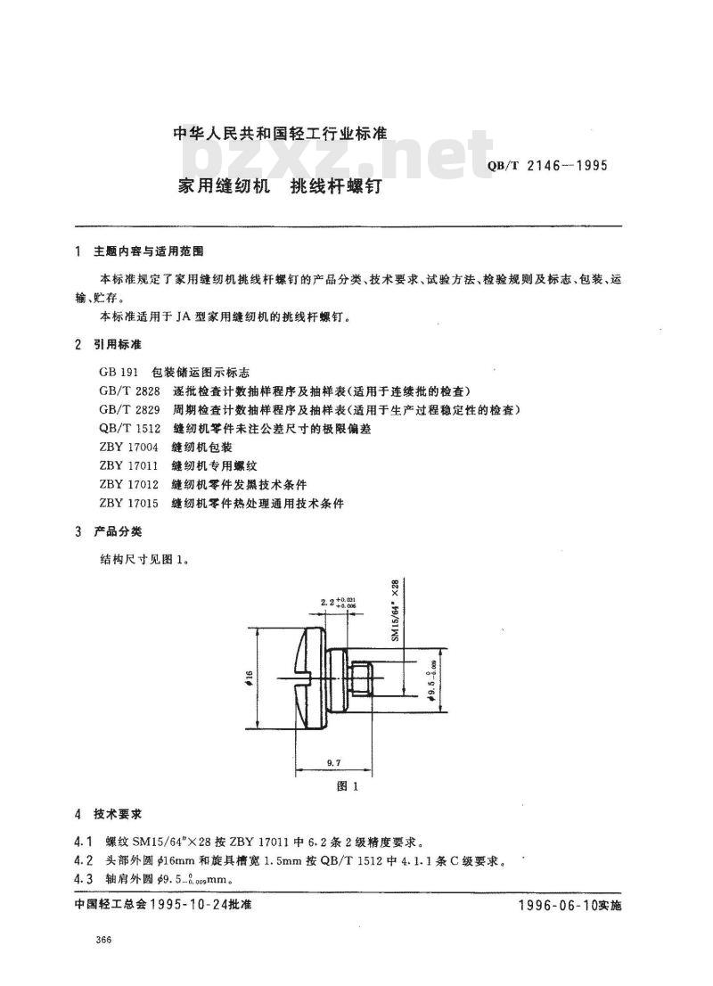 - QB/T 2146-1995 家用缝纫机挑线杆螺钉