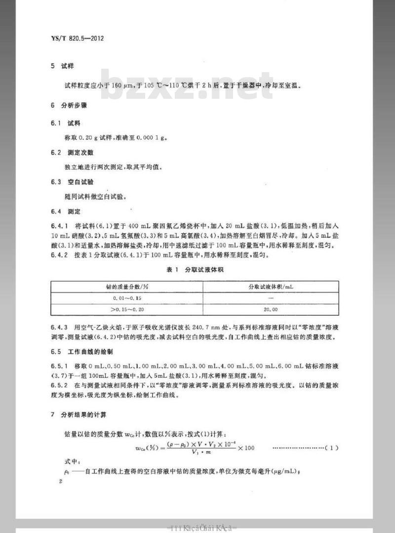 YS/T 820.5-2012 红土镍矿化学分析方法 第5部分:钴量的测定 火焰原子吸收光谱法 YS/T820.5-2012