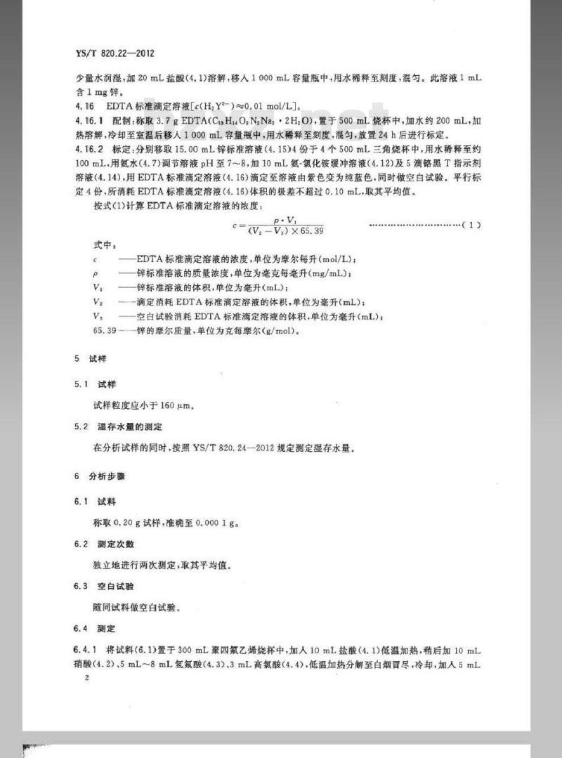 - YS/T 820.22-2012 红土镍矿化学分析方法 第22部分:镁量的测定 EDTA滴定法