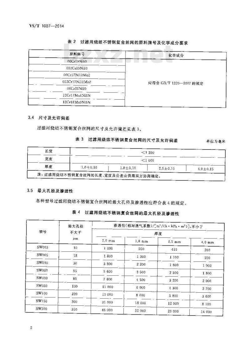 - YS/T 1007-2014 过滤用烧结不锈钢复合丝网