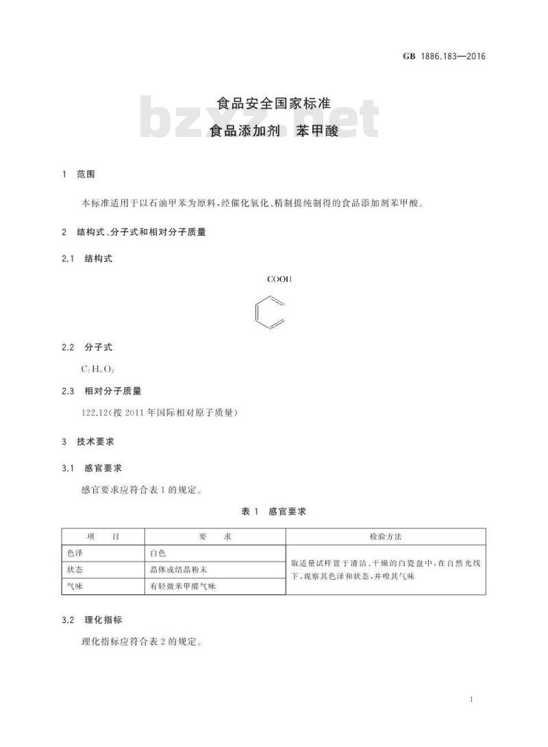 - GB 1886.183-2016 食品安全国家标准 食品添加剂 苯甲酸