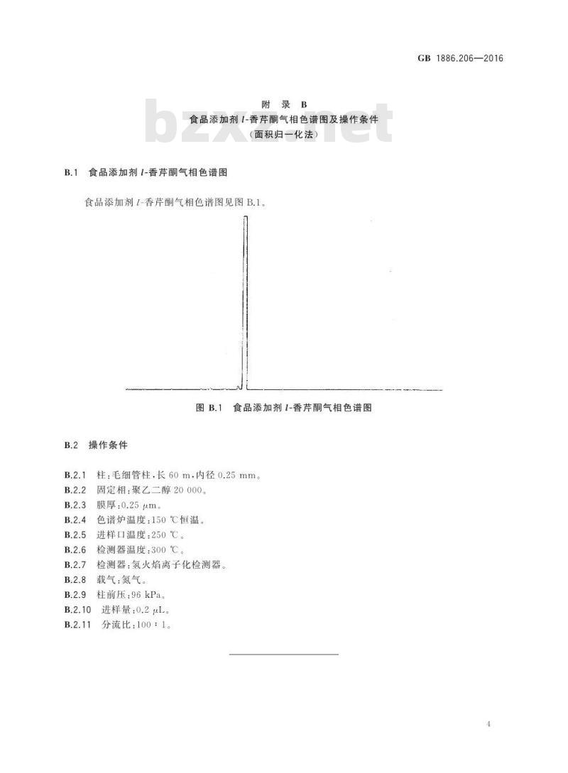 食品添加剂1-香芹酮气相色谱图见图B.1。图B.1