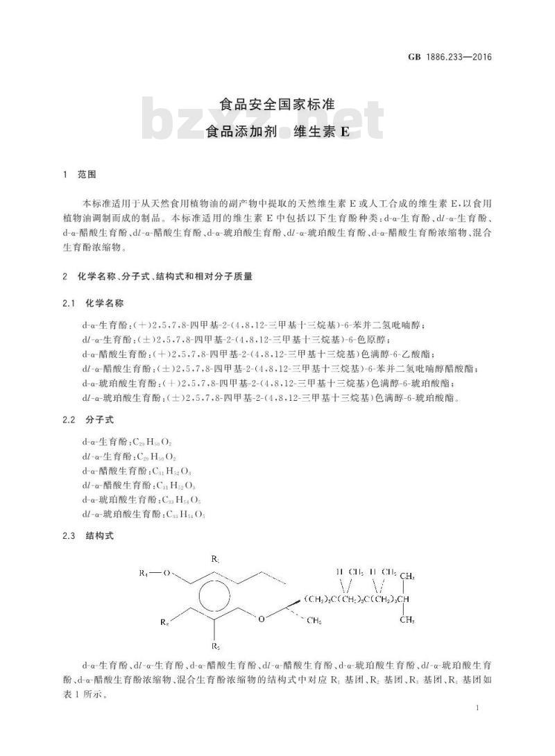 - GB 1886.233-2016 食品安全国家标准 食品添加剂 维生素E