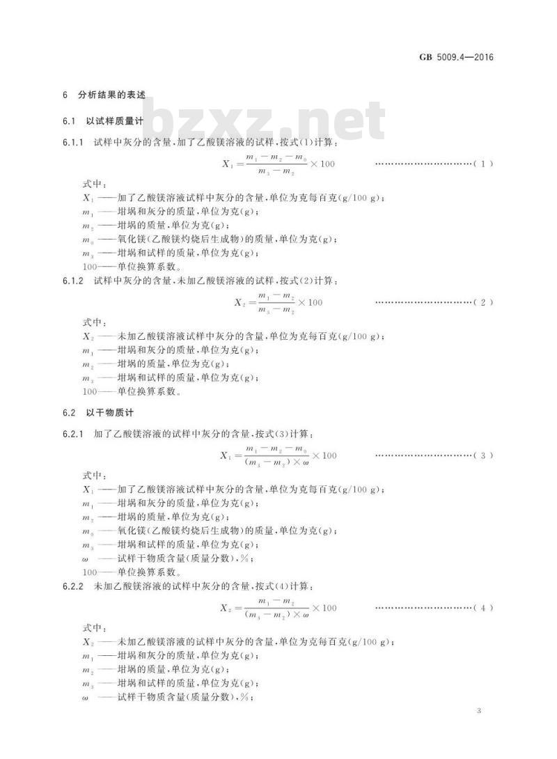 6.1.1试样中灰分的含量.加了乙酸镁溶液的试样,按式(1)计算:X