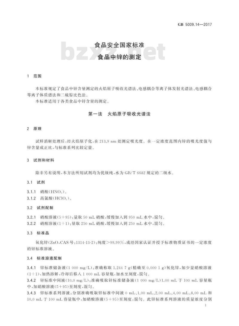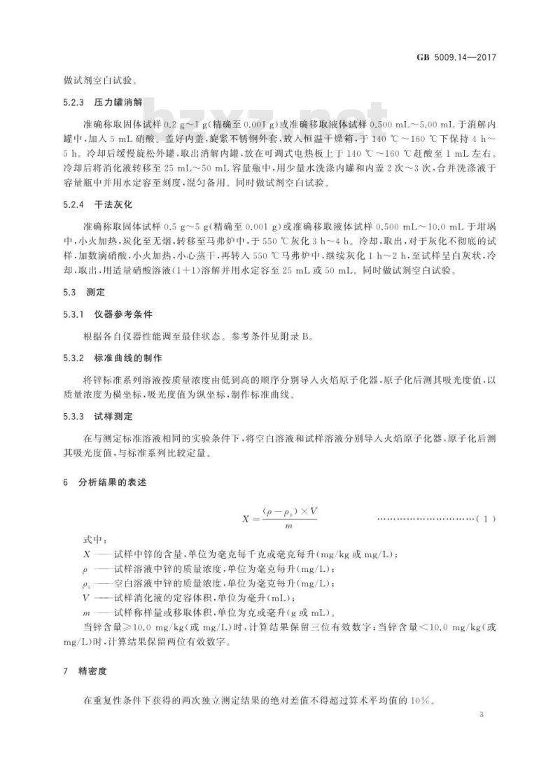 - GB 5009.14-2017 食品安全国家标准 食品中锌的测定