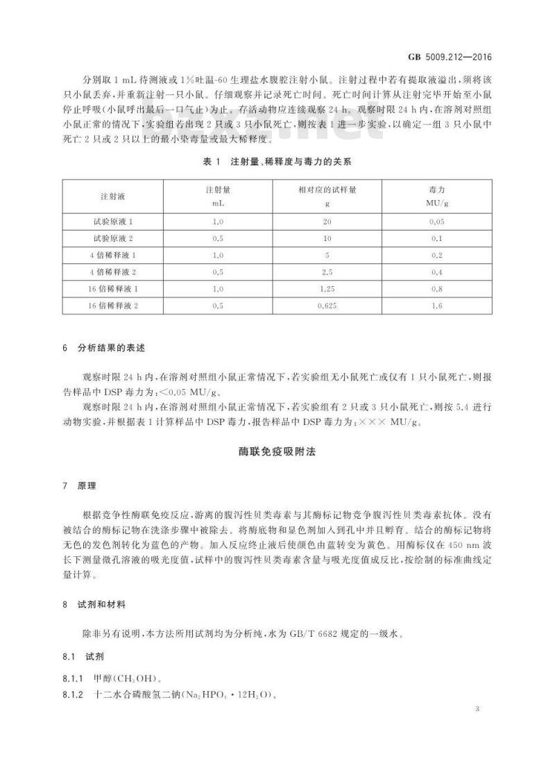 - GB 5009.212-2016 食品安全国家标准 贝类中腹泻性贝类毒素的测定