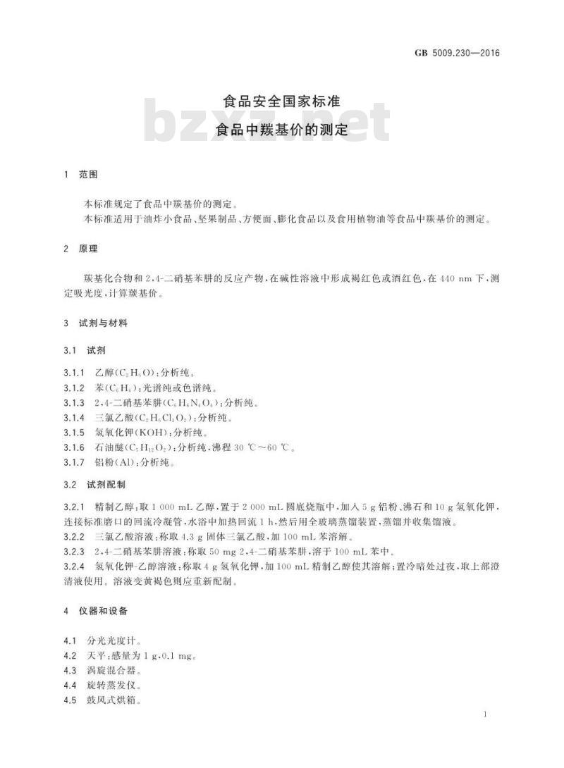 - GB 5009.230-2016 食品安全国家标准 食品中羰基价的测定