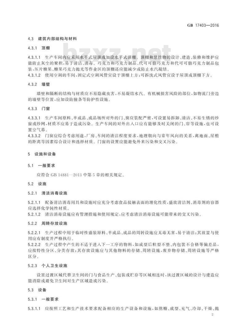 - GB 17403-2016 食品安全国家标准 糖果巧克力生产卫生规范