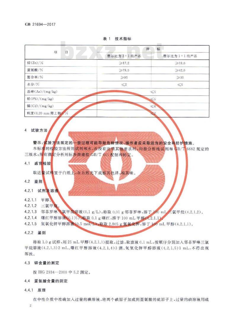 - GB 21694-2017 饲料添加剂 蛋氨酸锌络(螯)合物