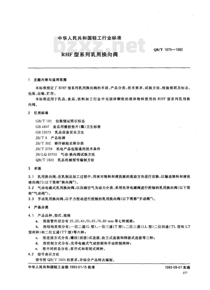 - QB/T 1675-1992 RHF型系列乳用换向阀
