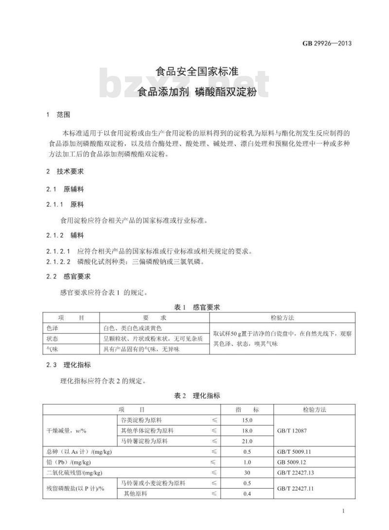 - GB 29926-2013 食品安全国家标准 食品添加剂 磷酸酯双淀粉