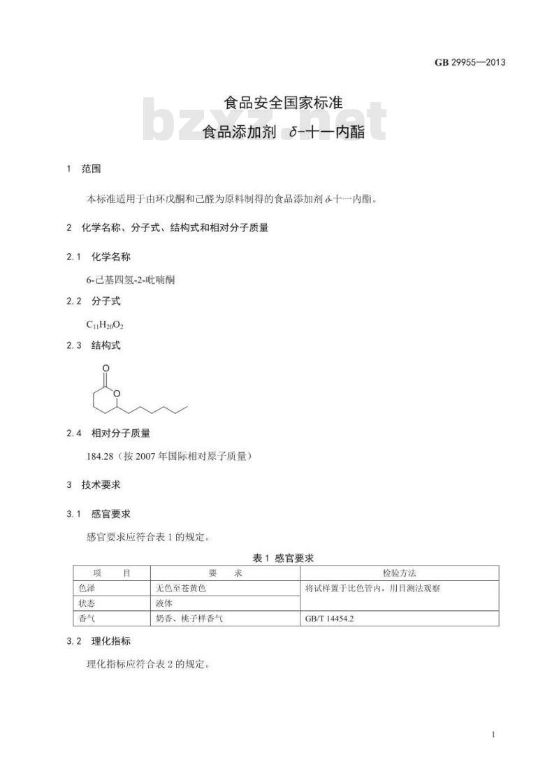 - GB 29955-2013 食品安全国家标准 食品添加剂 δ-十一内酯