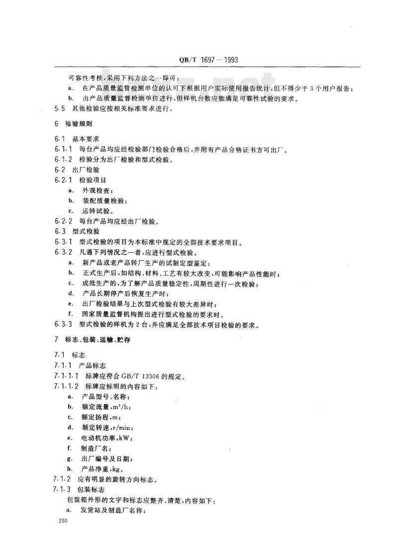 7.3.1装箱后的泵应放于干燥通风良好的成品库中,对临时露天存放的应采取防雨、防潮等措施。7.3.2凡存放12个月以上者,必须开箱检查,必要时重新采取防锈和包装措施。8质量保证