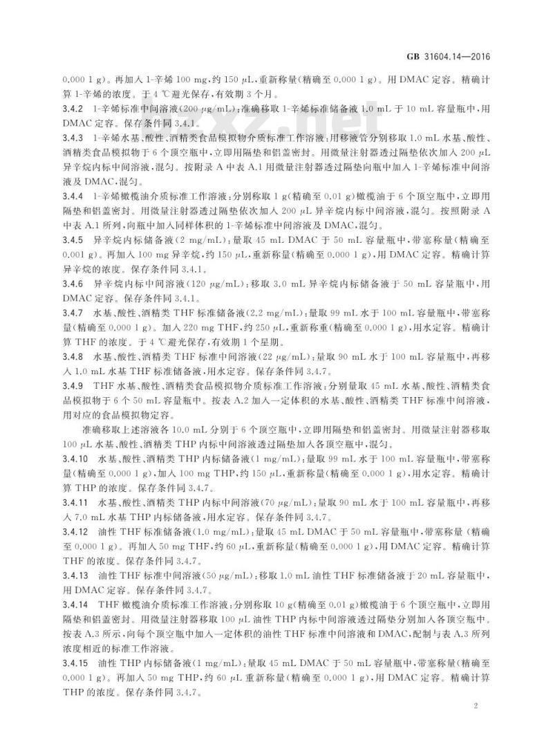 - GB 31604.14-2016 食品安全国家标准 食品接触材料及制品 1-辛烯和四氢呋喃迁移量的测定