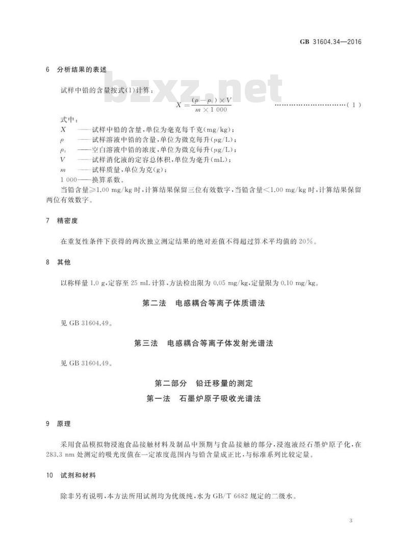 - GB 31604.34-2016 食品安全国家标准 食品接触材料及制品 铅的测定和迁移量的测定