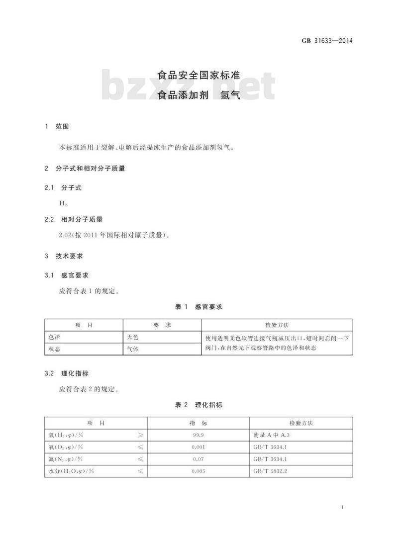 - GB 31633-2014 食品安全国家标准 食品添加剂 氢气