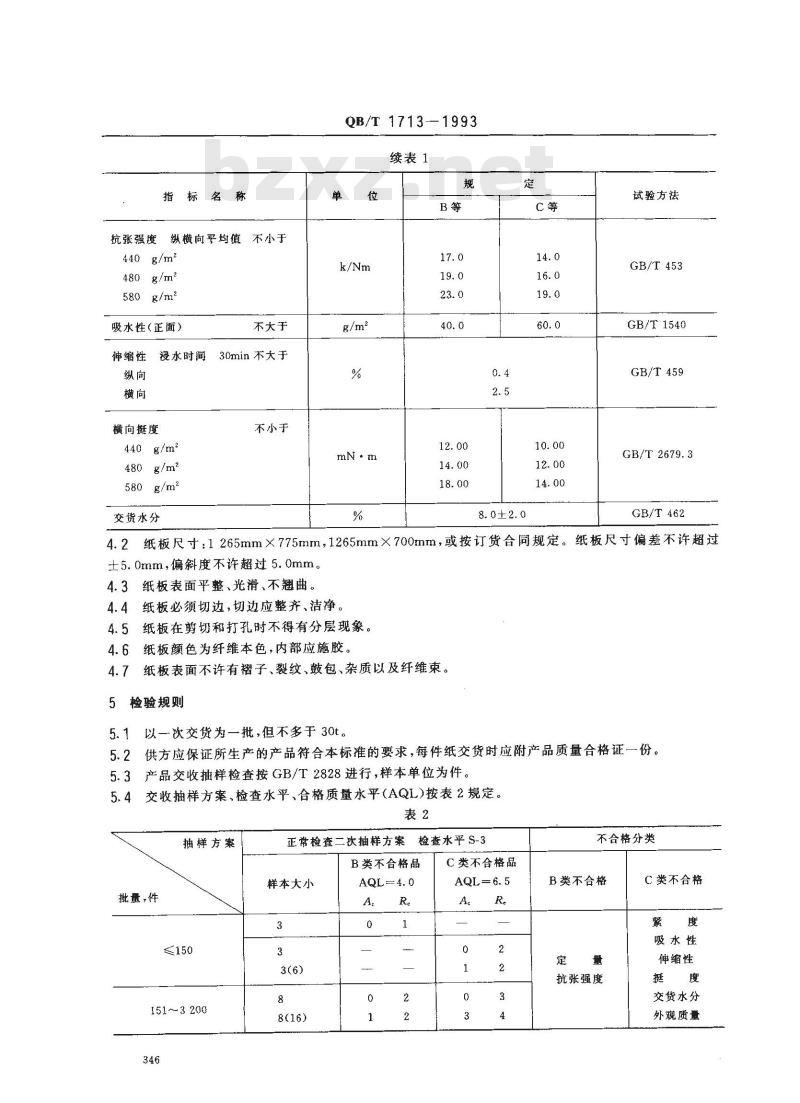4.7纸板表面不许有褶子、裂纹、鼓包、杂质以及纤维束。5检验规则