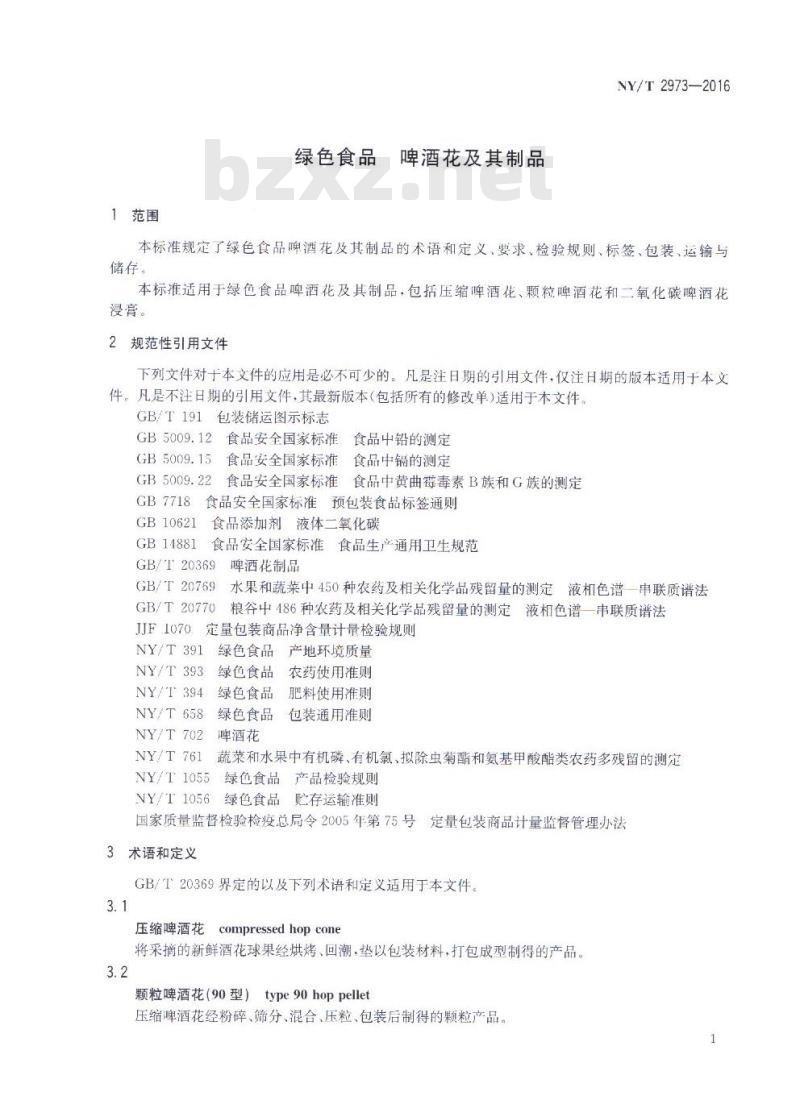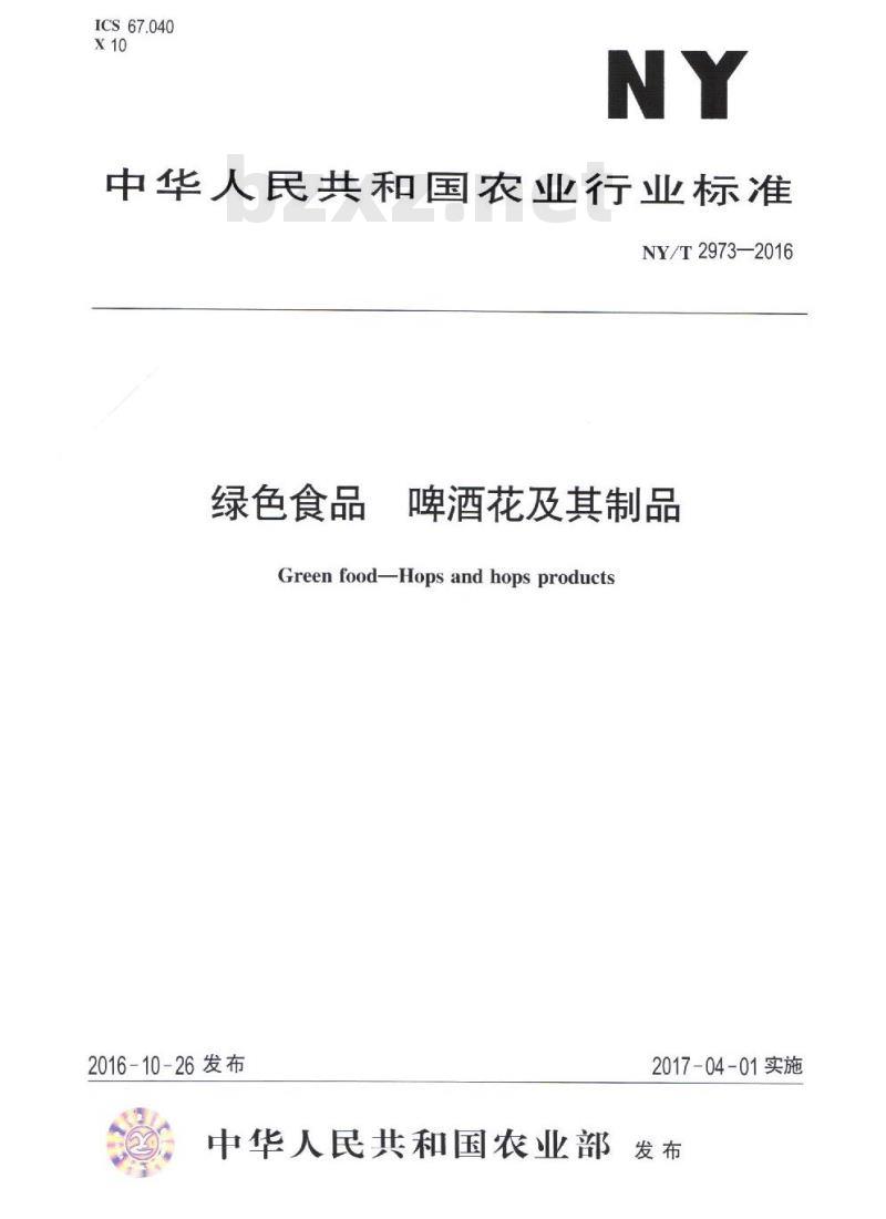 - NY/T 2973-2016 绿色食品 啤酒花及其制品
