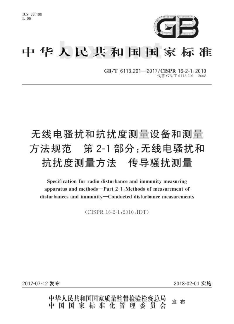 GB/T 6113.201-2017 无线电骚扰和抗扰度测量设备和测量方法规 范第 2-1 部分:无线电骚扰和抗扰度测量方法 传导骚扰测量 GB/T6113.201-2017