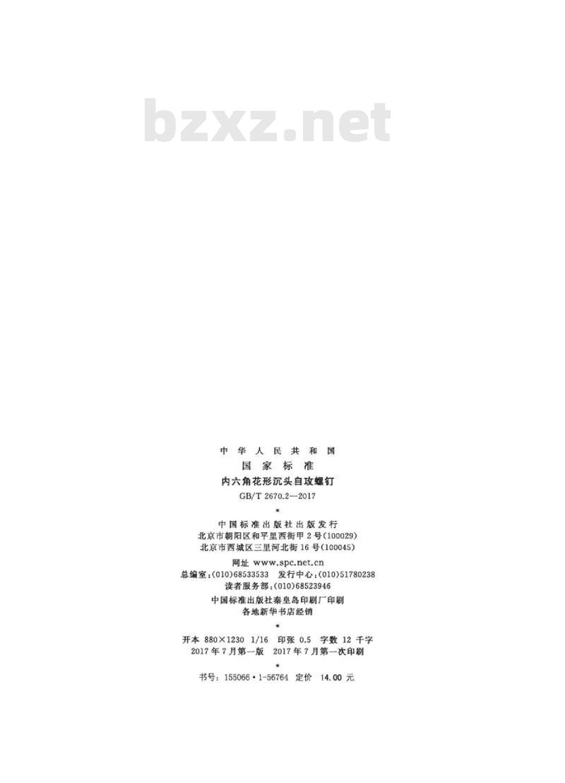 - GB/T 2670.2-2017 内六角花形沉头自攻螺钉