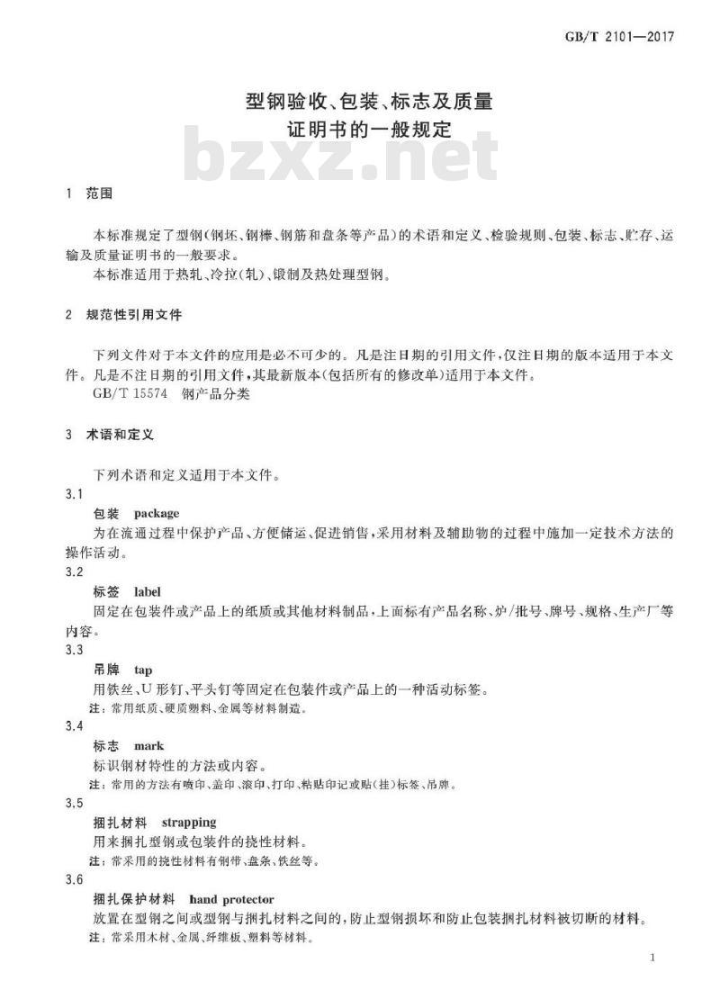 - GB/T 2101-2017 型钢验收、包装、标志及质量证明书的一般规定