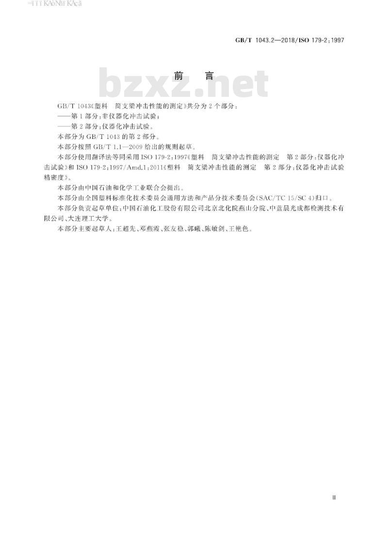 本部分按照GB/T1.1一2009给出的规则起草本部分使用翻译法等同采用ISO179-2:1997《塑料简支梁冲击性能的测定第2部分:仪器化冲击试验和IS0179-2:1997/Amd.1:2011《塑料简支梁冲击性能的测定第2部分:仪器化冲击试验精密度》。