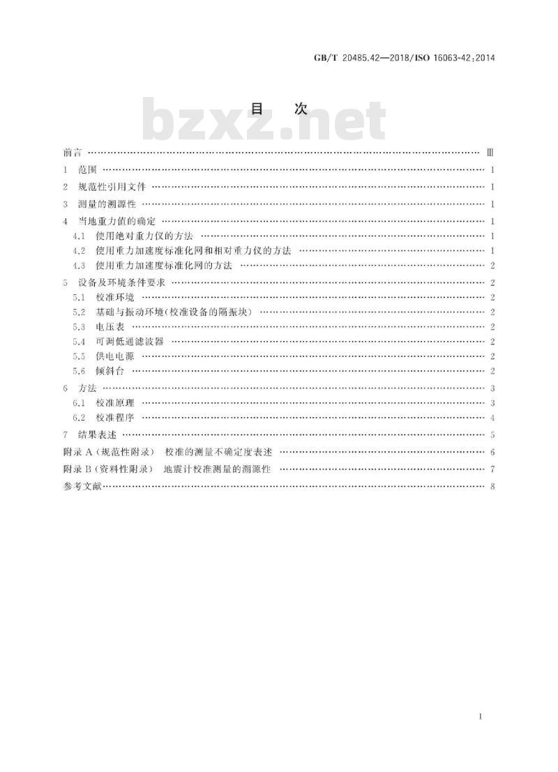 GB/T 20485.42-2018 振动与冲击传感器校准方法 第42部分:高精度地震计的重力加速度法校准 GB/T20485.42-2018